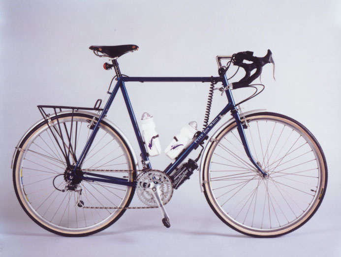 I build Peter Jon White frames with the finest steel tubing available; Reynolds, Vitus, and True Temper. All frames are brazed with silver or bronze solder depending on the style of joint and the application. Lugs used are by Henry James. Fillet brazing of some joints is necessary when no lug is available for the type of joint required. Dropouts by Campagnolo, Shimano, Henry James, Vitus, Everest, and Breezer are used, again depending on the type of frame.
